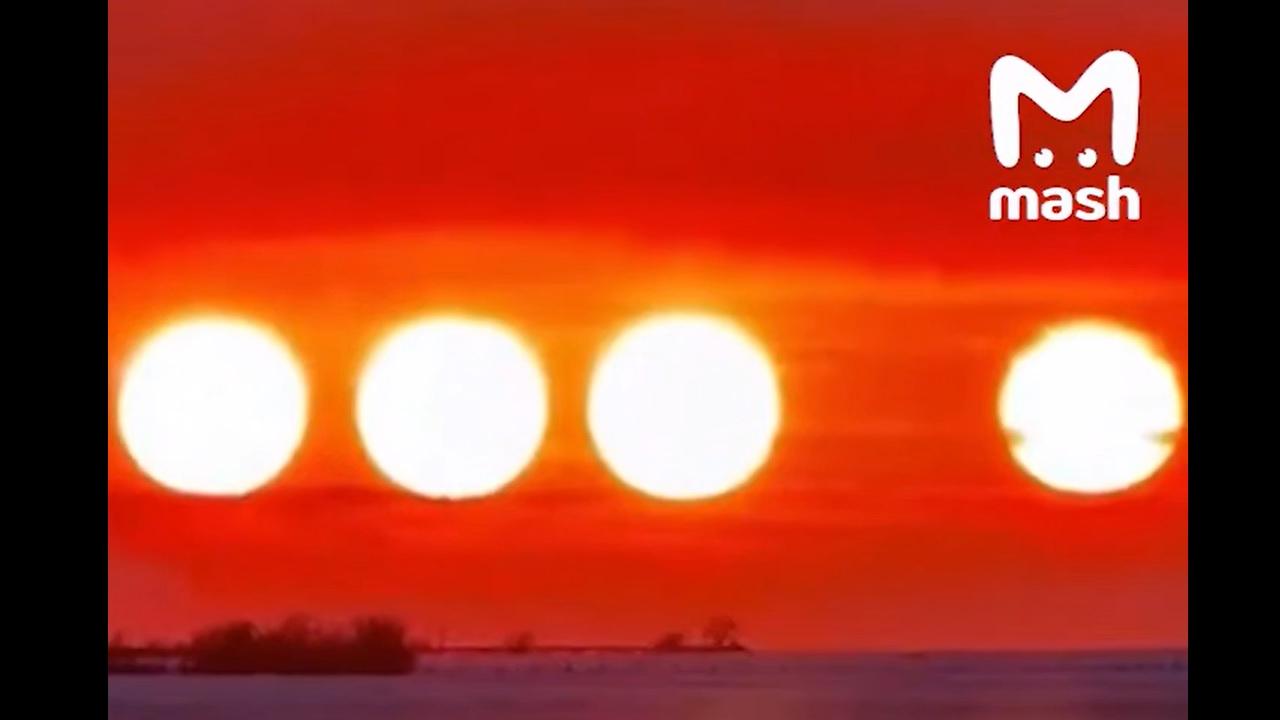 Такое явление называется «паргелий» («ложное Солнце»). Оно возникает из-за преломления света, экстремально низких температур и мелких кристаллов льда, находящихся в воздухе.
