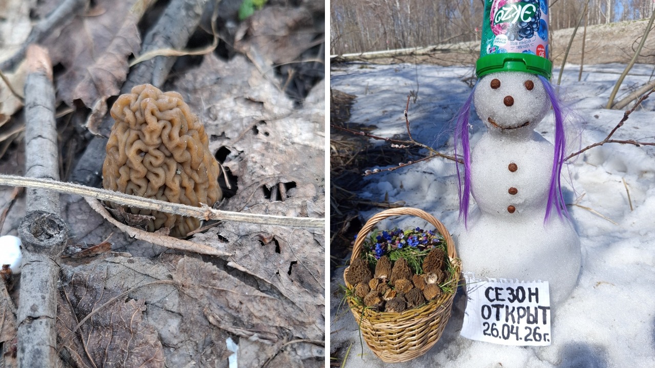 «Вчера было открытие рыбалки на поплавок, сегодня сморчковые шапочки в Искитимском районе! Буквально час назад ещё фотографировал снеговика в лесу, символ уходящей зимы. Весна сегодня в лесу открыла для грибников свои двери!» — написал он.
