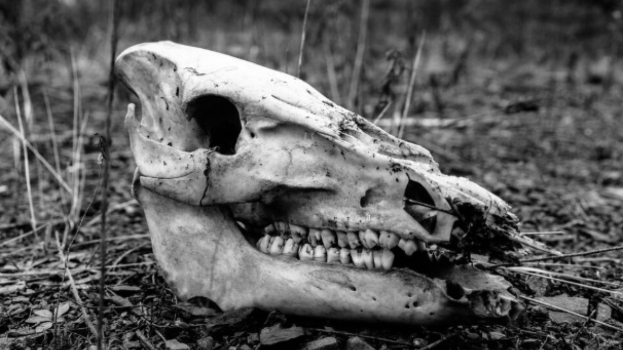 Алтарь, украшенный черепами животных, кто-то обустроил в Кудряшовском бору. Останки разложили на пеньках особым образом.