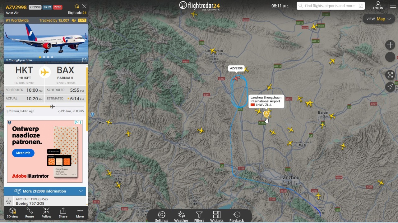 Обновлено: в компании Azur Air сообщили, что авиарейс Пхукет — Барнаул совершил благополучную посадку в китайском аэропорту Ланьчжоу.