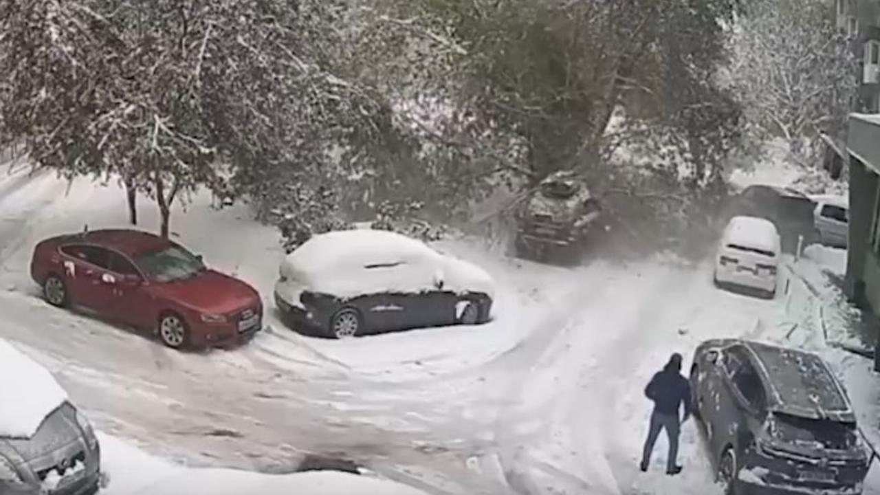 Падение дерева произошло внезапно. Этот момент зафиксировала камера наблюдения.