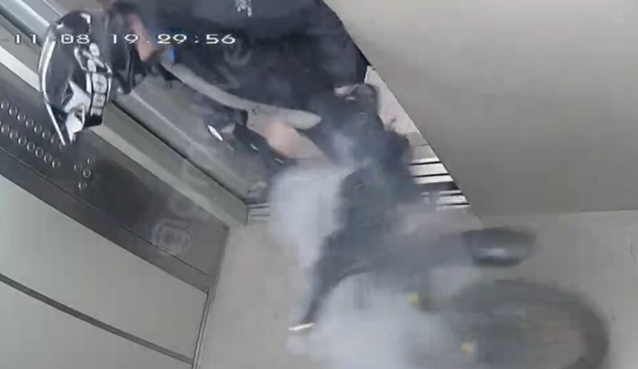 Спортсмен чуть не погиб в лифте, когда загорелся его велосипед. Видео с происходящим опубликовали в тг-канале «О чём говорят в Новосибирске».