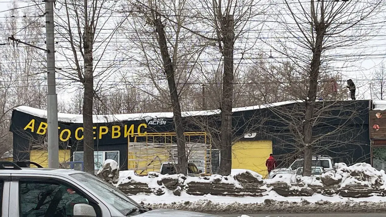 Пострадало строение на улице Сибиряков-Гвардейцев. В нём находится сразу несколько организаций: автомойка, СТО, шиномонтаж и кафе.