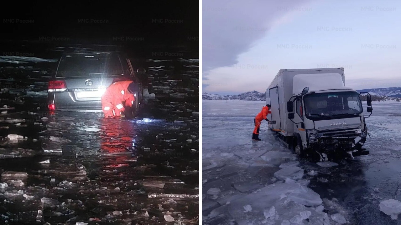 В районе Ольхонской ледовой переправы 20 и 21 февраля два автомобиля оказались под водой. Переправа официально закрыта из-за плохого состояния льда, но люди продолжают выезжать на опасные участки.