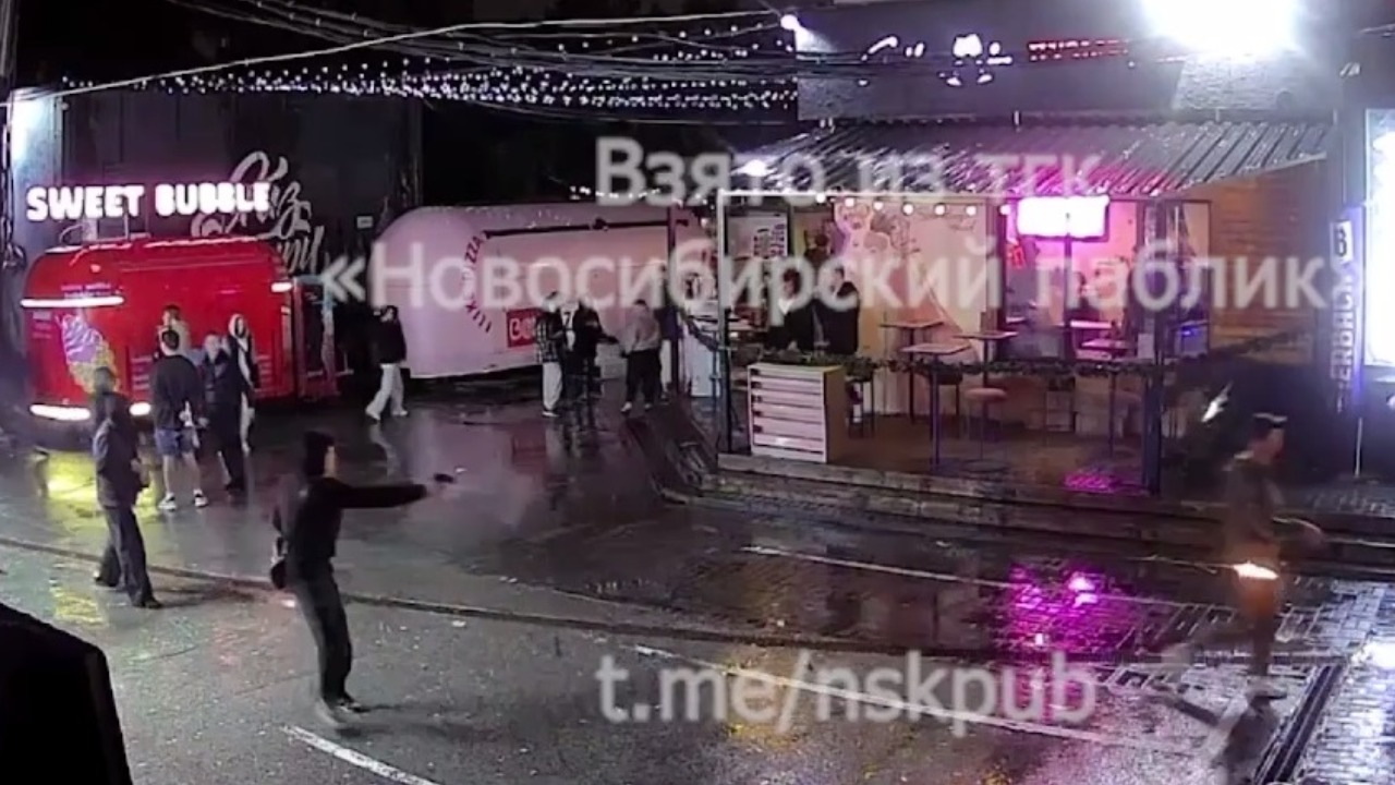 Перестрелка началась в ночь на 24 августа в Первомайском сквере. Видео с места происшествия опубликовал телеграмм-канал «Новосибирский паблик».