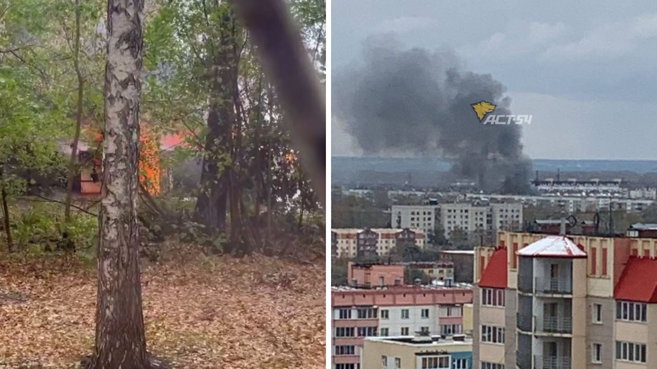 Кадры пожара опубликовал Telegram-канал АСТ-54 Black. На них видны чёрные столбы дыма.
