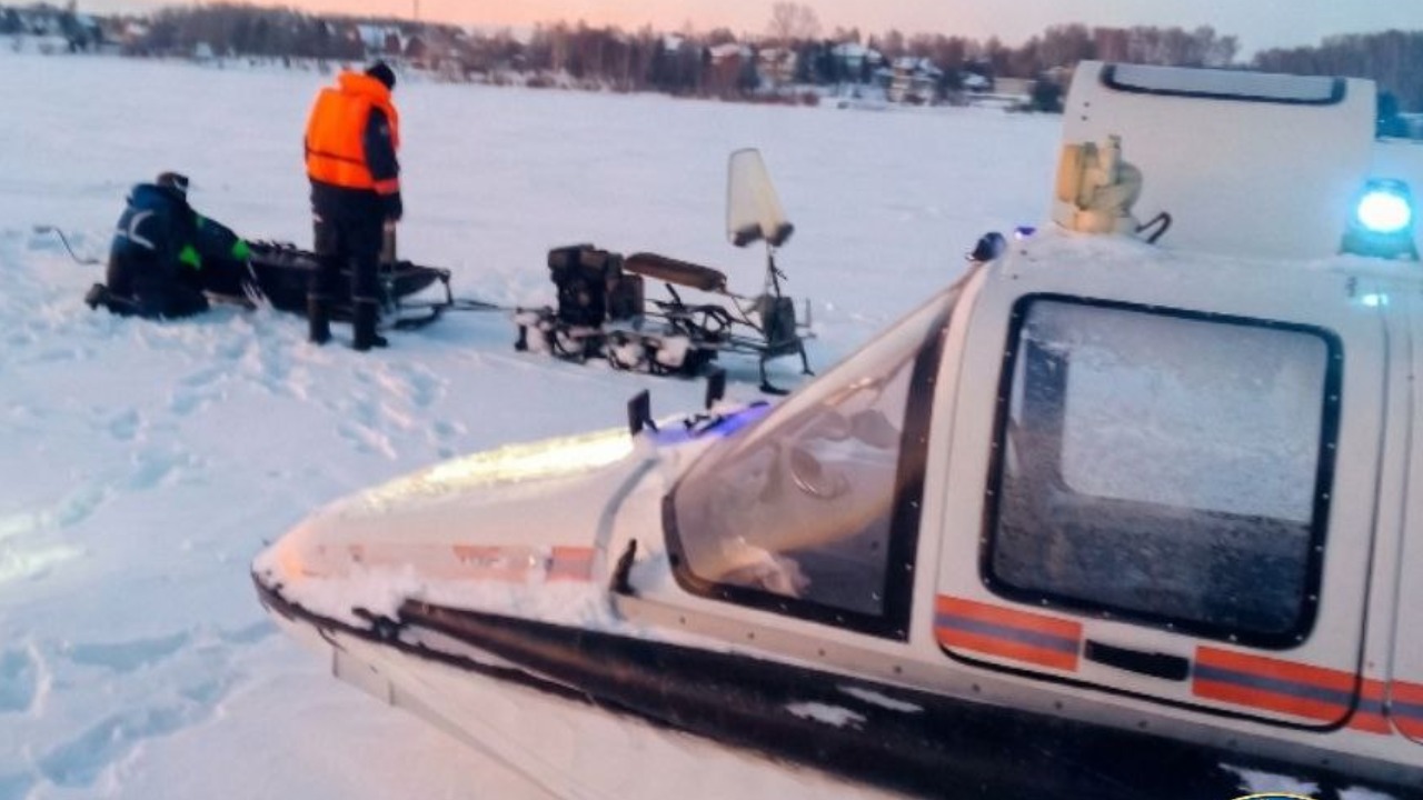 Мужчины оставили машину на берегу и отправились на мотособаке искать место для рыбалки, но вскоре их транспорт вышел из строя.