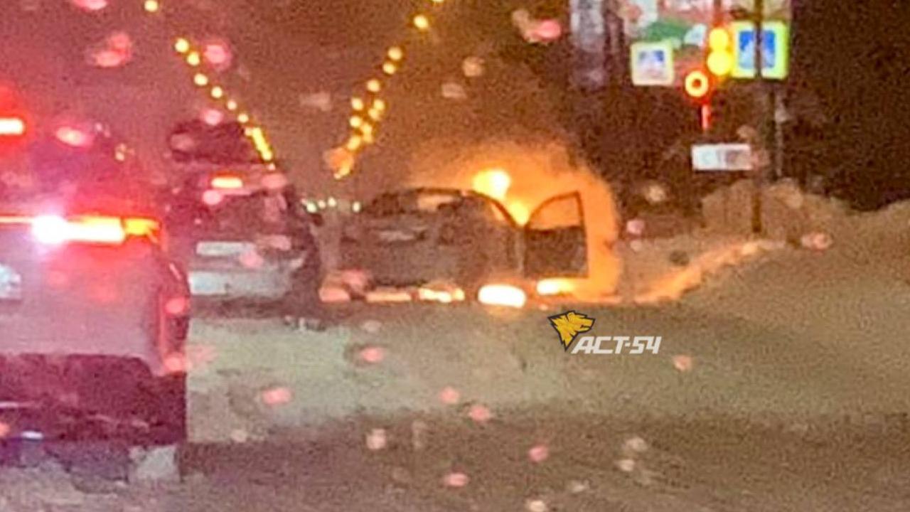 О происшествии сообщили в Telegram-канале АСТ-54 Black. По информации очевидцев, огонь охватил белый седан Toyota Premio.