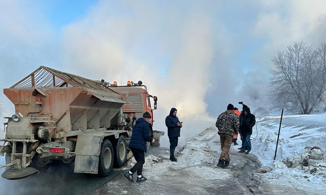 Горячая вода хлынула на проезжую часть улицы Лазурной днём 18 января. В зоне отключения ресурсов находятся 14 домов и детский сад.