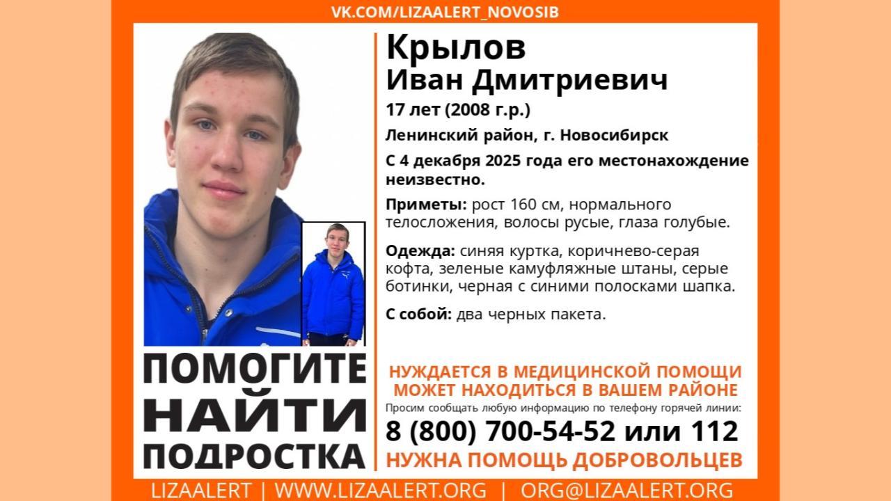 Иван Крылов исчез 4 декабря в Ленинском районе. О его пропаже сообщили волонтёры поискового отряда «ЛизаАлерт».