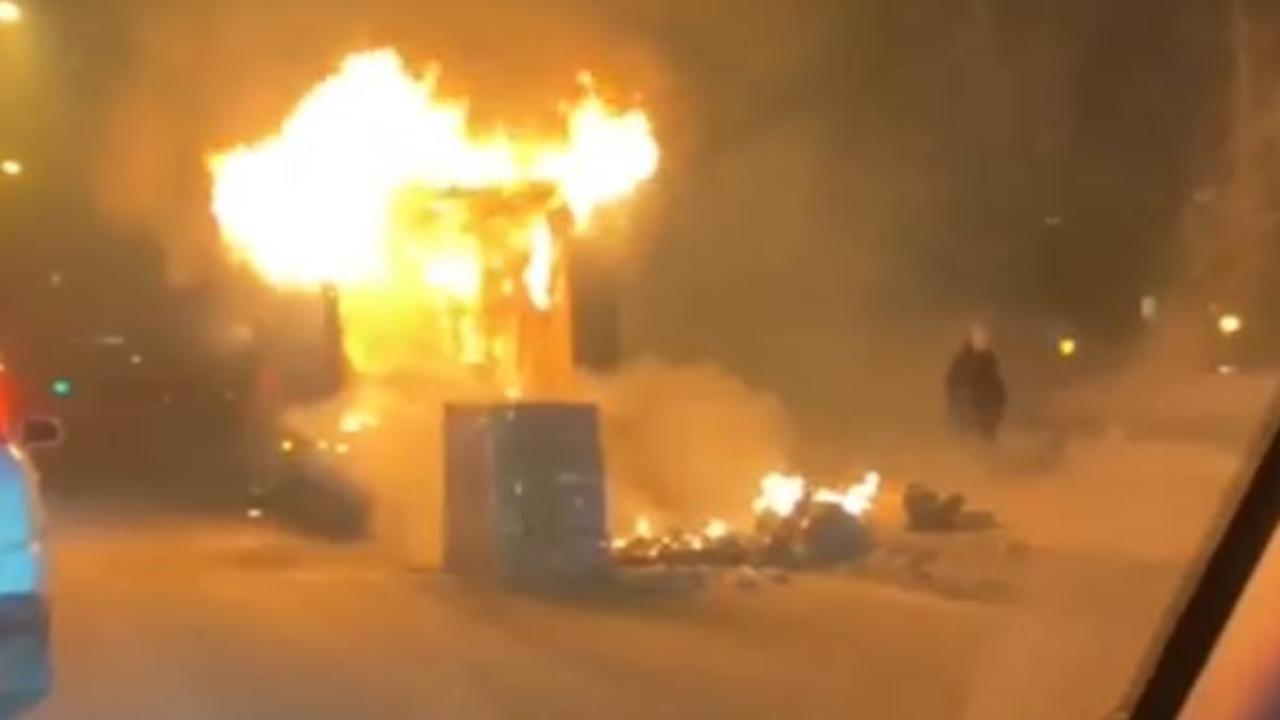 Грузовой автомобиль вспыхнул на улице Немировича-Данченко. Судя по кадрам, транспорт полностью охвачен огнём.