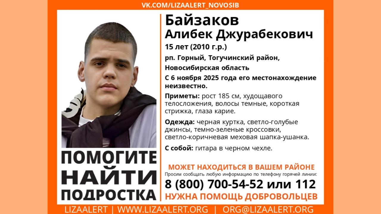 Алибека Байзакова в последний раз видели 6 ноября в посёлке Горный Тогучинского района. Об этом сообщили волонтёры поисково-спасательного отряда «ЛизаАлерт».