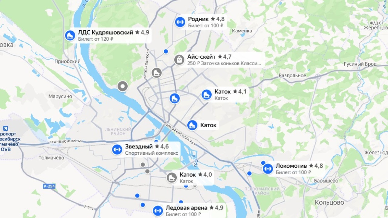 Кроме того, на карту города нанесли 244 катка. По этому показателю столица Сибири занимает 3 место в стране среди городов-миллионников.
