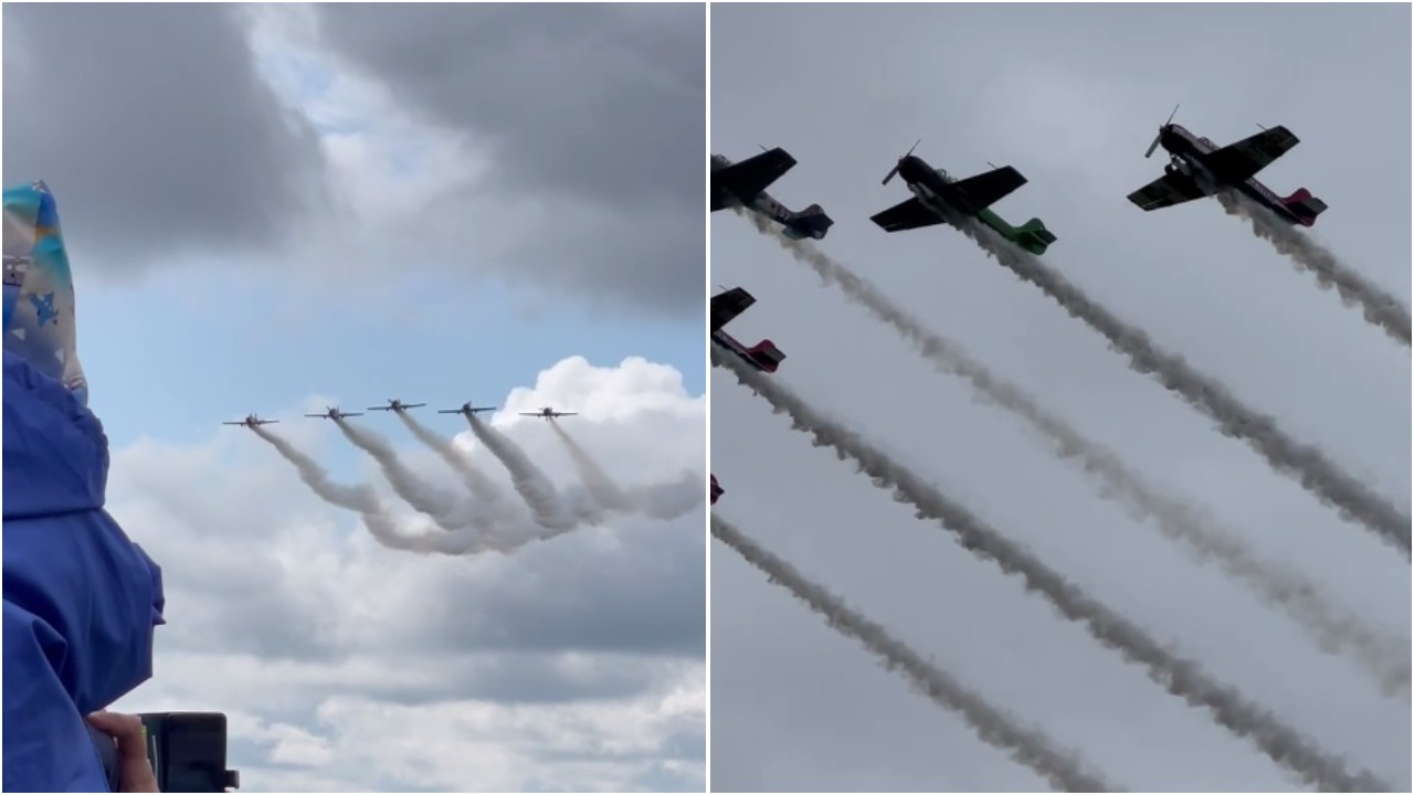 Дождливая погода не отпугнула ни лётчиков, ни любителей воздушного экстрима. Несмотря на непогоду, асы виртуозно выделывали в небе различные фигуры высшего пилотажа на радость зрителям.
