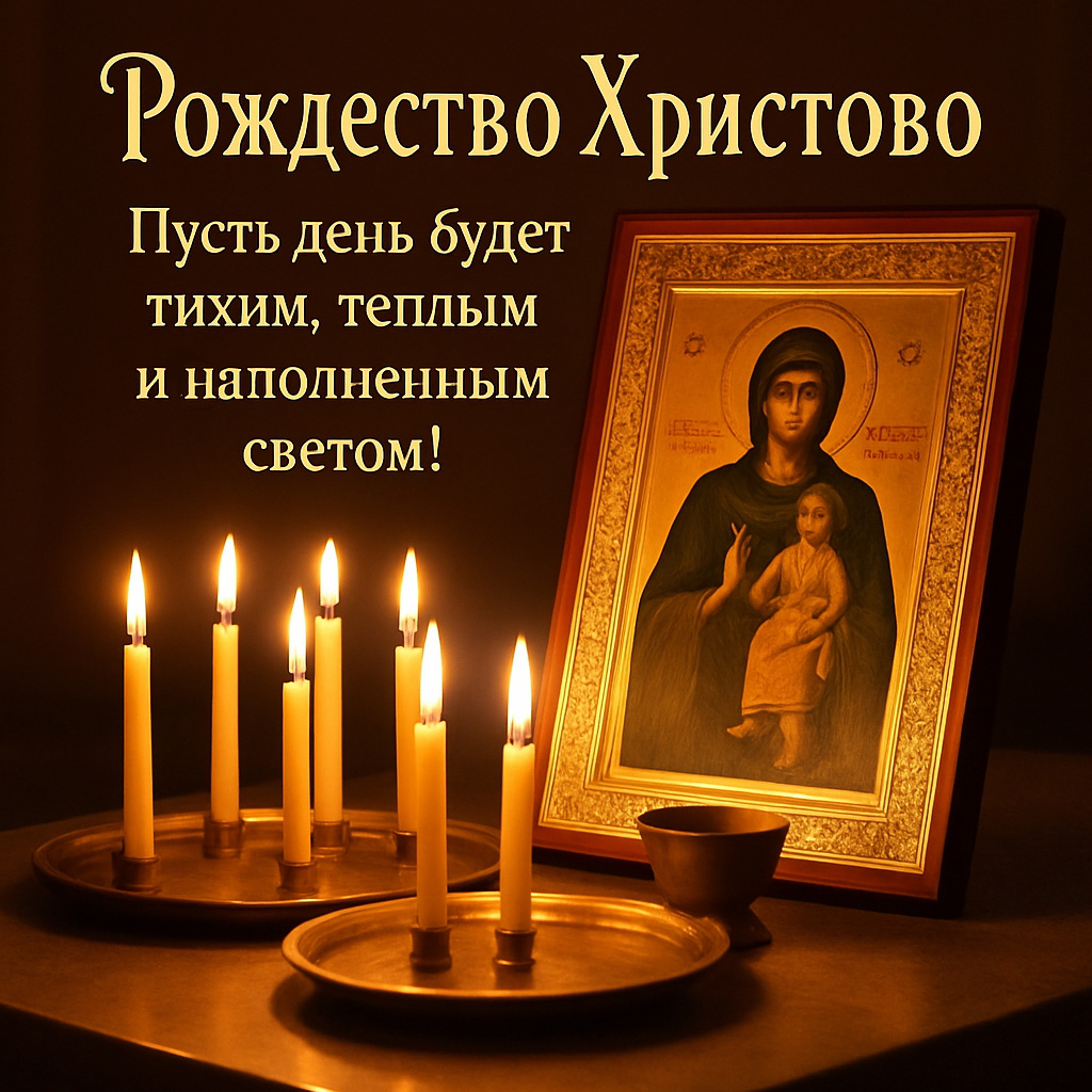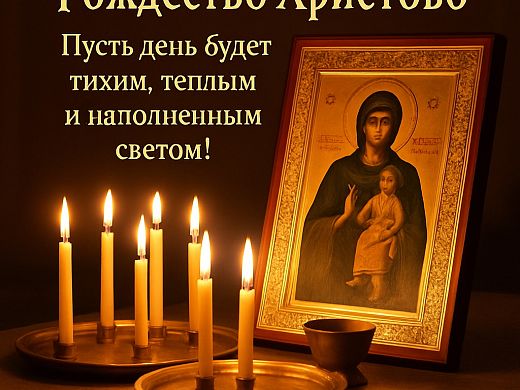 Примите искренние поздравления с великим праздником! В этот день, когда мир озарился светом рождения Спасителя, желаю вам духовной крепости, душевного спокойствия и Божьего благословения.