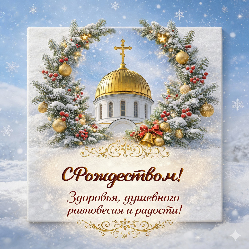 От всего сердца поздравляем вас с Рождеством Христовым! Пусть этот светлый праздник принесёт в ваш дом тепло, гармонию и благодать. Пусть рядом будут любящие люди, в душе — мир, а в делах — благословение. Счастливого Рождества!