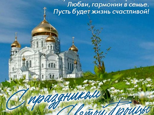 Поздравляю Вас с днём святой Троицы! Хочу пожелать непоколебимой веры, Божьей милости и дарования, чуткого сердца и доброты. Пусть Ваша душа не знает печалей и светится счастьем. Спокойствия, беспечности и мира Вам и вашему дому.