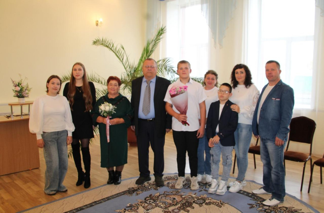 На торжестве ведущий специалист отдела ЗАГС Лилия Батракова вручила почётный адрес юбилярам. К поздравлениям присоединились дети, внуки и представители местных организаций.