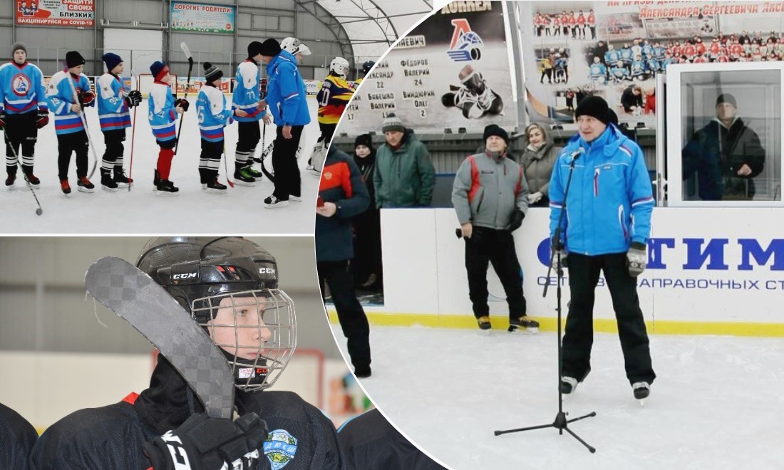 На открытии турнира в Карасукском районе глава администрации Вячеслав Кулаков встал на коньки, чтобы лично поприветствовать каждого игрока.