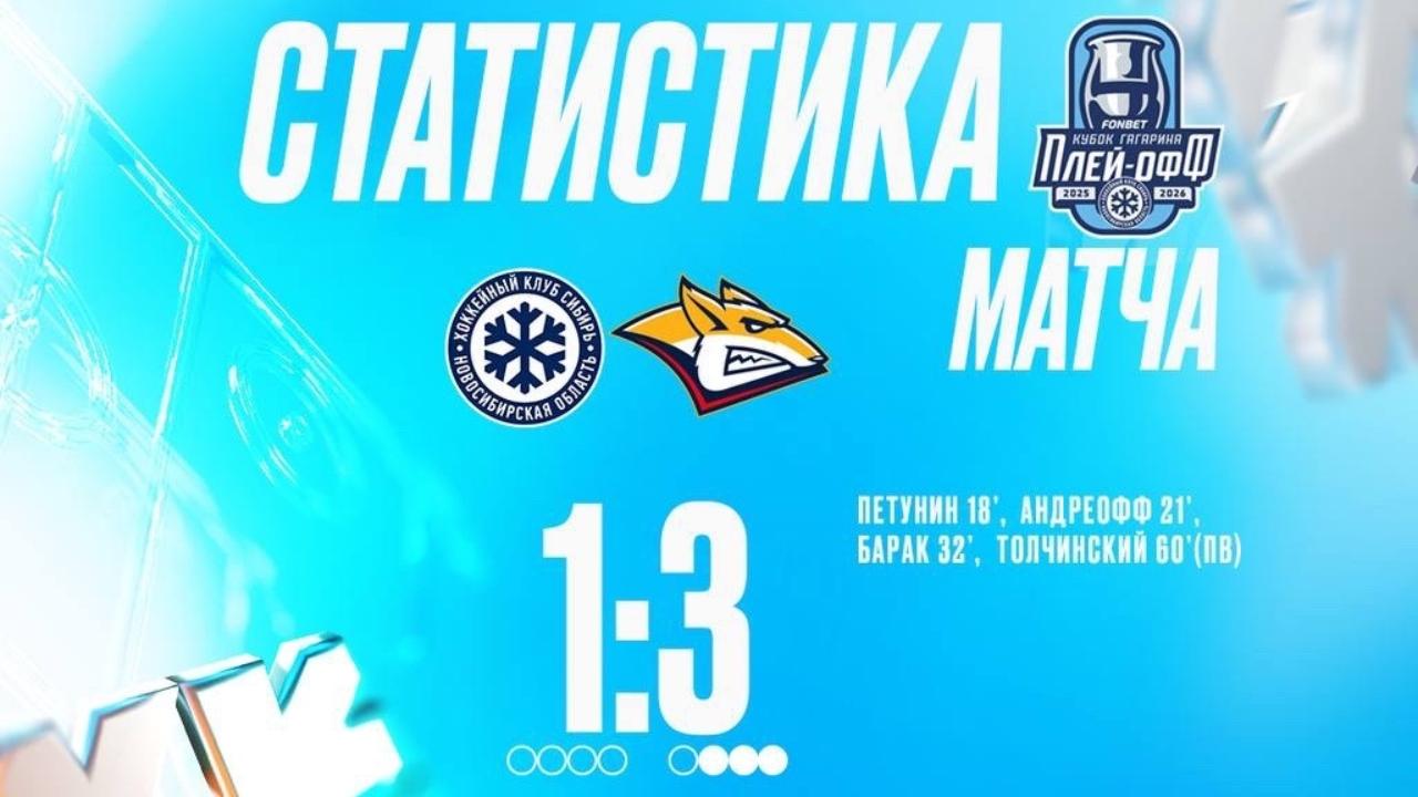 Игра завершилась со счётом 1:3. Команды встретились на ледовой арене в Новосибирске. Ворота защищал Михаил Бердин.