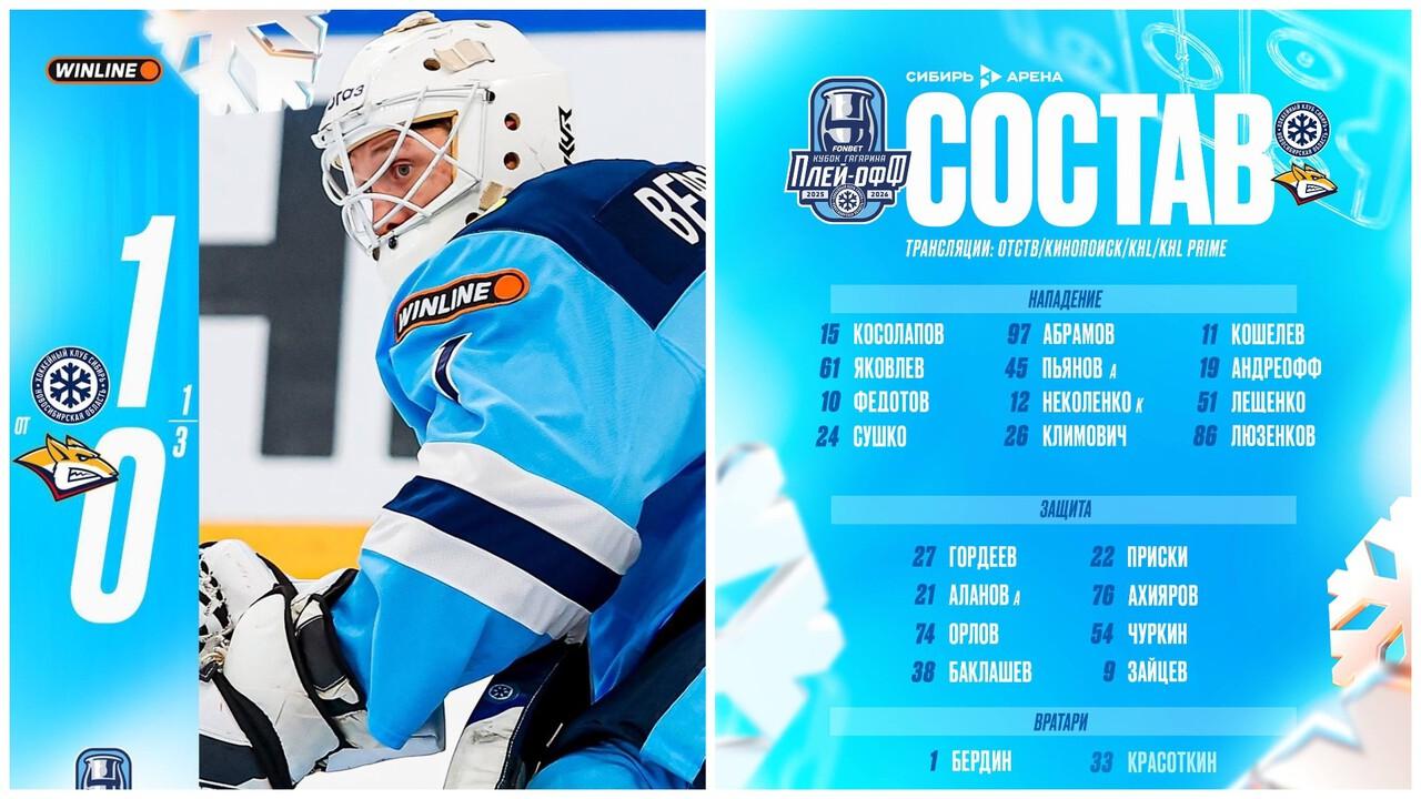 Во втором и третьем периодах «Сибирь» активно атаковала, но соперник удерживал оборону. Основное время завершилось со счётом 0:0. Победу новосибирцам принёс точный бросок Косолапова во втором овертайме.