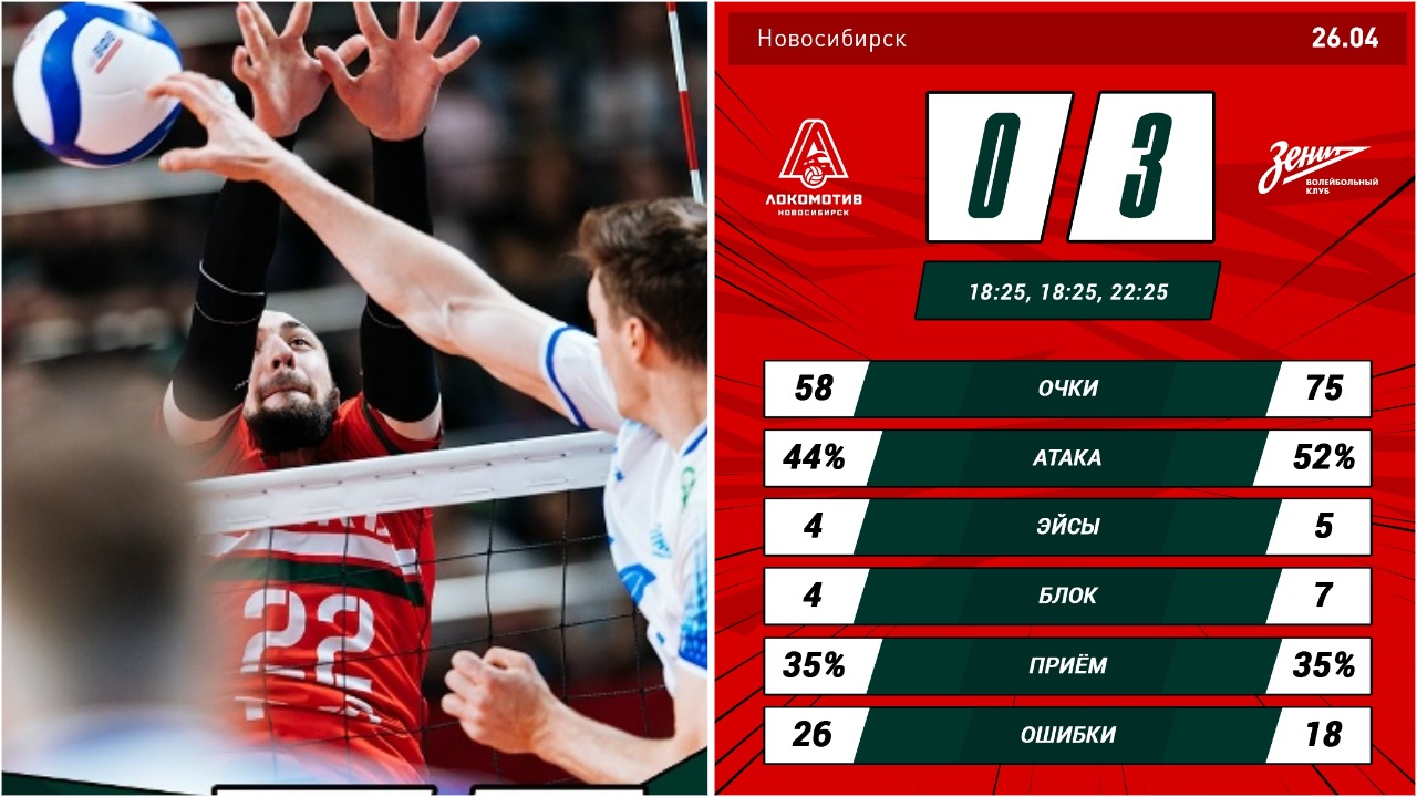 Петербургский «Зенит» обыграл новосибирский «Локомотив» в третьем матче серии плей-офф за третье место чемпионата России по волейболу среди мужчин.