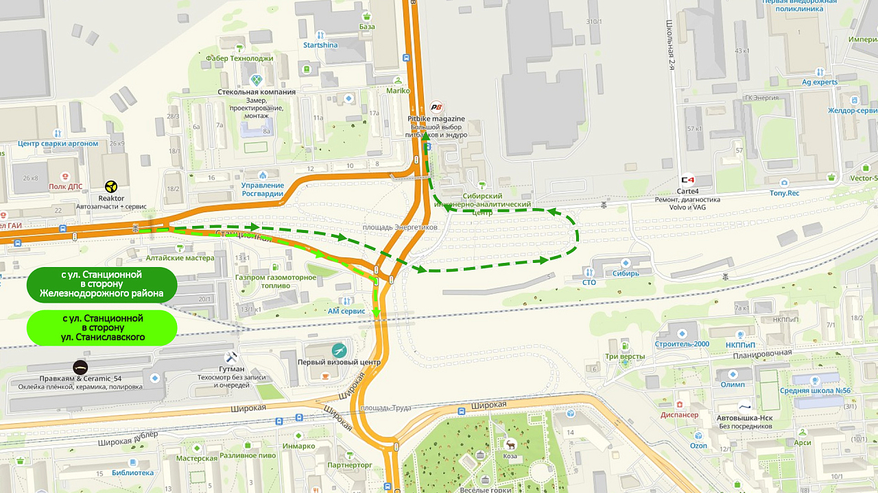 Движение по улице Станционной со стороны аэропорта «Толмачёво» в направлении моста Димитрова теперь будет осуществляться по новой схеме. Горсайт подготовил картинку с указанием, как теперь двигаться по площади.