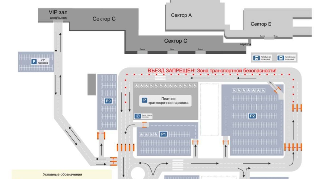 Администрация воздушной гавани рекомендует пассажирам использовать новую парковку Р9, которая является самой близкой ко входу в терминал С. Чтобы добраться до неё, нужно при съезде с кольца повернуть налево, пересечь проспект Мозжерина, проехать через правый шлагбаум и повернуть направо.