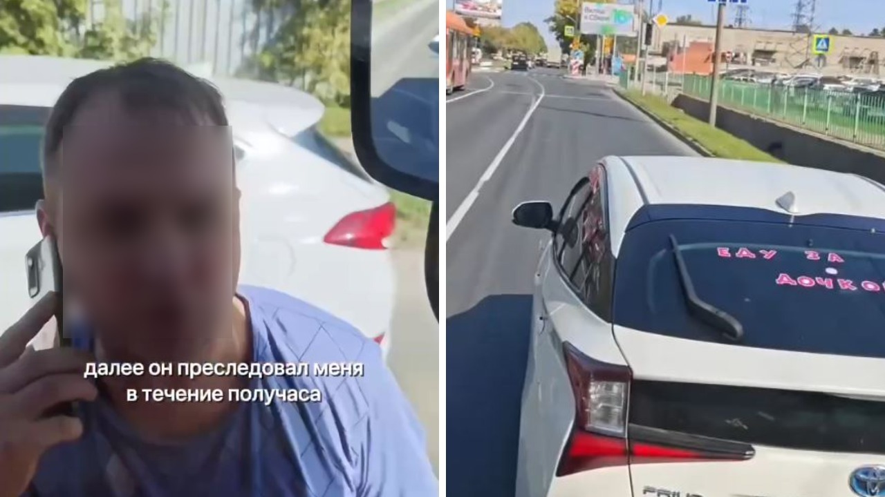 Причиной конфликта стало перестроение автобуса, которое не понравилось водителю Toyota. Владелец иномарки торопился, а общественный транспорт ему помешал. Видимо, мужчина ехал в роддом, так как сзади автомобиля была наклеена фраза «Еду за дочкой!». Но вместо того, чтобы продолжить путь, водитель стал преследовать автобус.