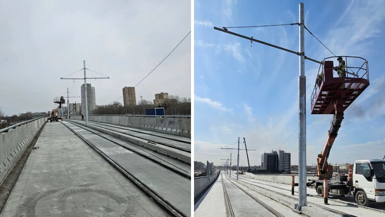 «Начат монтаж контактной сети на трамвайной эстакаде. Работы идут по графику, который предполагает открытие движения для трамваев в понедельник, 27 апреля», — сообщили в пресс-службе группы «ВИС».
