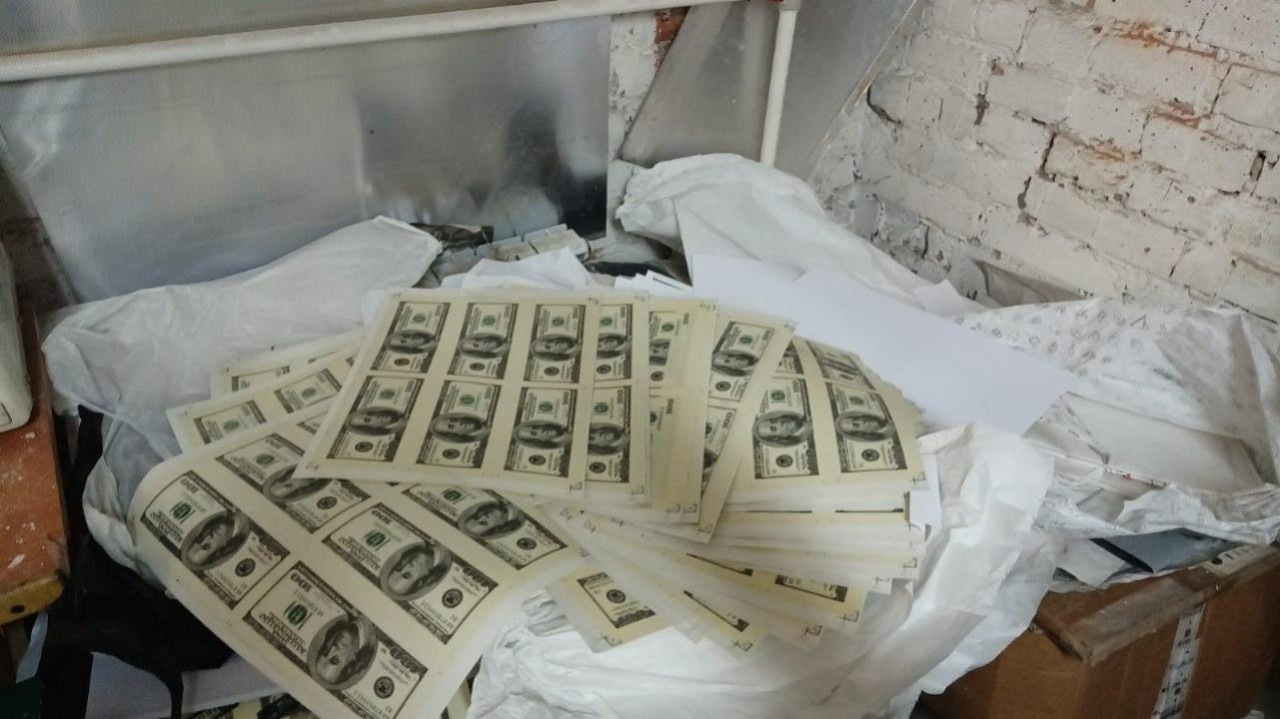 Во время обыска изъяли 2243 готовых купюры номиналом 100 долларов США, листы бумаги с отпечатанными заготовками, специализированное типографское оборудование, печатные станки, пресс, клише, негативы, краски, химические реактивы, бумага и другие предметы, используемые в производстве.