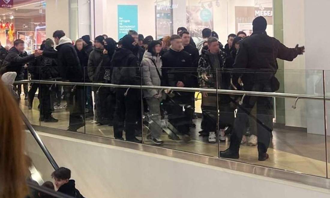 Фото момента задержания подростков в ТРЦ "Галерея", опубликованное в социальных сетях