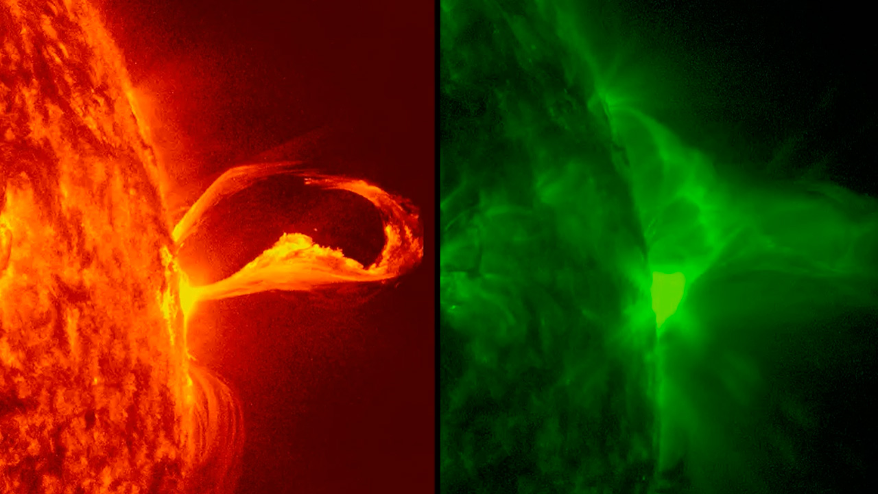 Вспышка уровня M2.0 стала самой сильной в октябре. Она зарегистрирована на обратной стороне солнечного диска и фактически не несёт геомагнитной угрозы для Земли. Благодаря такому расположению удалось наблюдать необычайно красивый выброс плазмы.