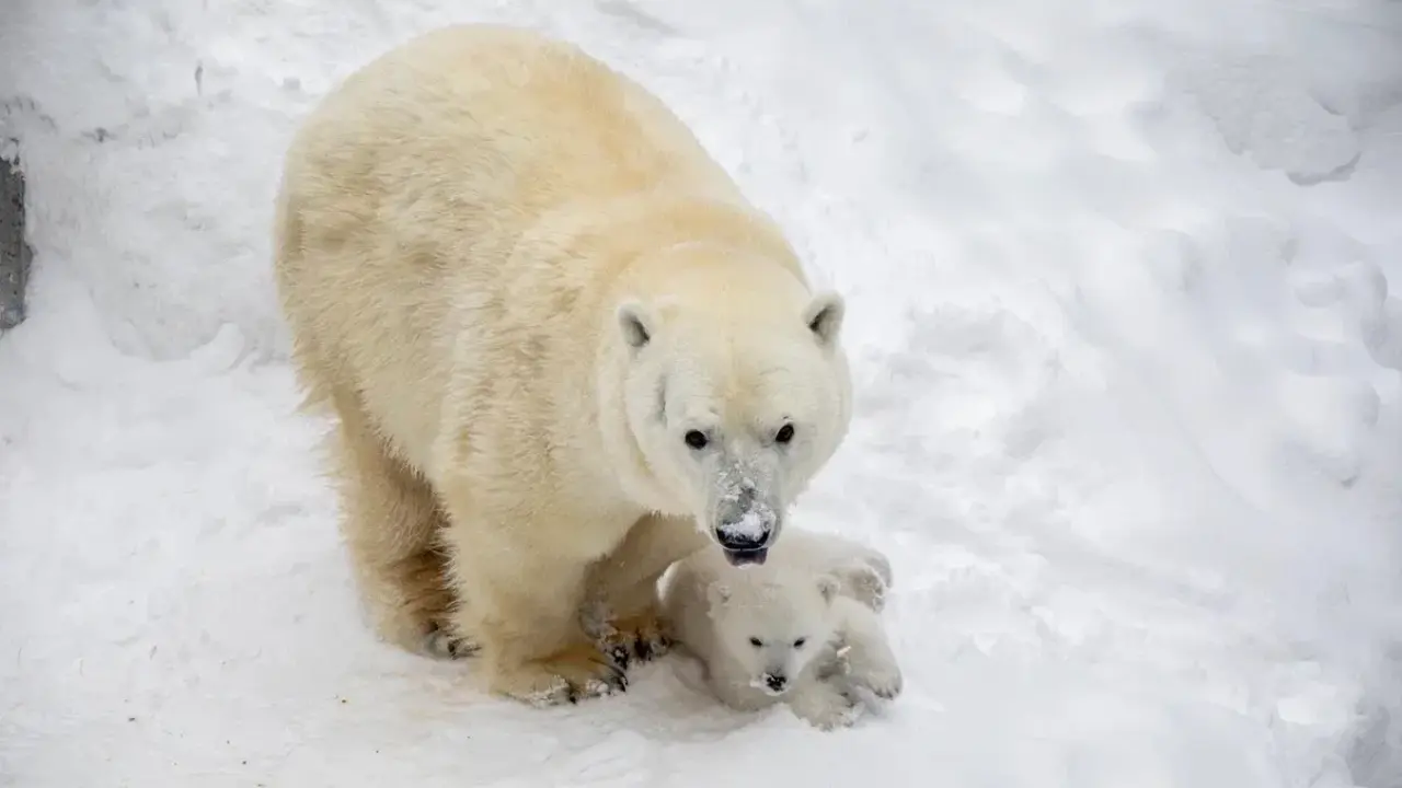 «Рядом с мамой-медведицей он едва заметен. В первые месяцы жизни мать не оставляет кроху одного ни на секунду. Наша Герда со всеми своими детьми вела себя именно так. В этот раз она впервые вышла за едой 26 февраля. То есть медведица не покидала логово более двух месяцев», — рассказали в зоопарке.