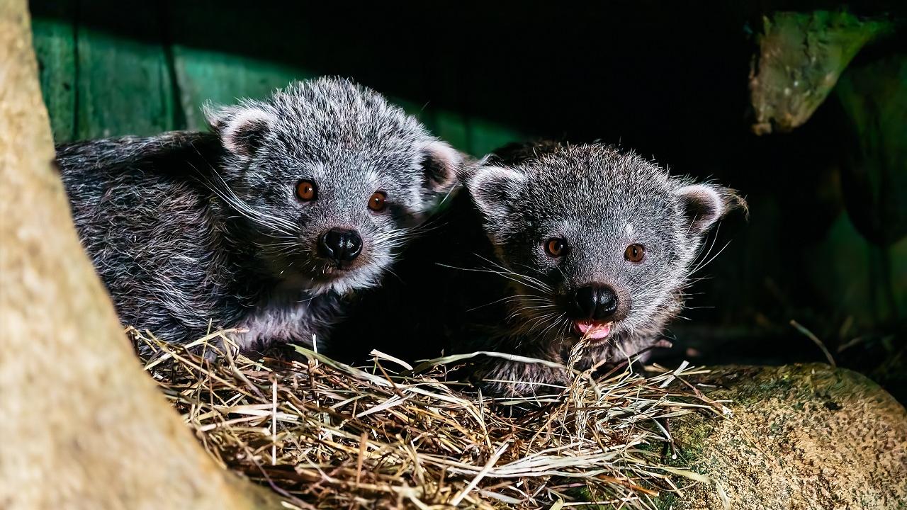 Прошлым летом в Новосибирском зоопарке впервые в России родилась двойня бинтуронгов. До этого эти редкие животные не размножались в неволе.